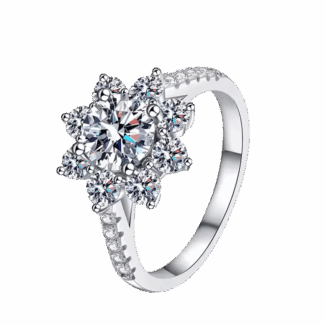 Pierścionek Flower z moissanitami szlif okrągły srebro 925/1ct/2ct moissanit – Round