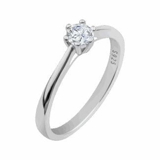 Pierścionek Soliter z moissanitem szlif okrągły – Round – srebro 925 0.3ct 4mm