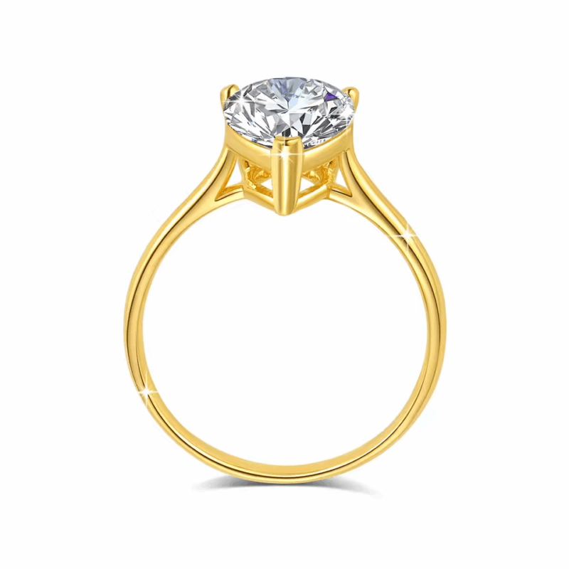 Pierścionek Aria zachwyca swoją subtelnością i wyjątkowym designem. Wykonany z prawdziwego złota 14K (585), łączy klasykę z nowoczesnym minimalizmem. Centralny moissanit 2ct w szlifie łezka (Pear Cut) urzeka niepowtarzalnym refleksem światła i optycznym efektem wydłużenia palca.
