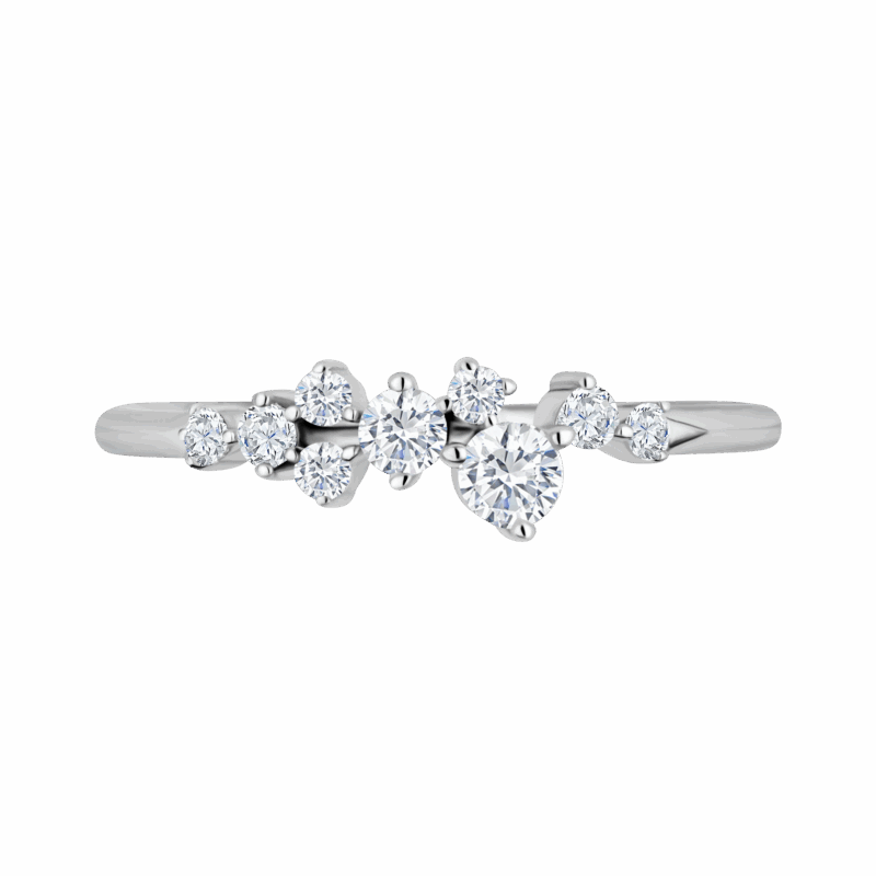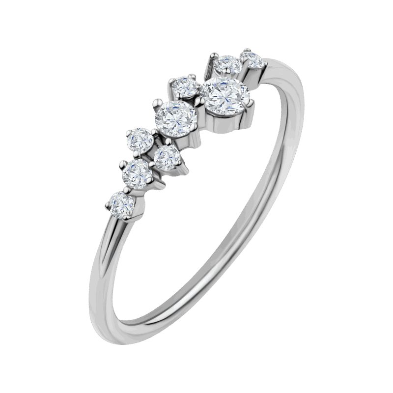 Aurora to pierścionek stworzony z myślą o kobietach, które kochają wyjątkowe, a zarazem subtelne akcenty. Jego projekt inspirowany jest zjawiskiem zorzy — układ moissanitów w różnych rozmiarach tworzy efekt delikatnego świetlistego ruchu, jakby iskry światła tańczyły przy każdym obrocie dłoni.