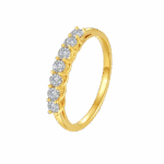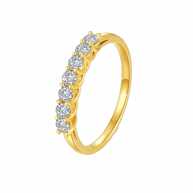 Blask, który trudno opisać słowami — Pierścionek Eternia został zaprojektowany z myślą o kobietach kochających subtelny, a jednocześnie luksusowy styl. Na smukłej obrączce ze złota 18K (Au750) osadzono starannie dobrane, okrągłe moissanity tworzące harmonijną, półokrągłą linię światła. Każdy ruch dłoni rozświetla kamienie intensywnym ogniem optycznym.