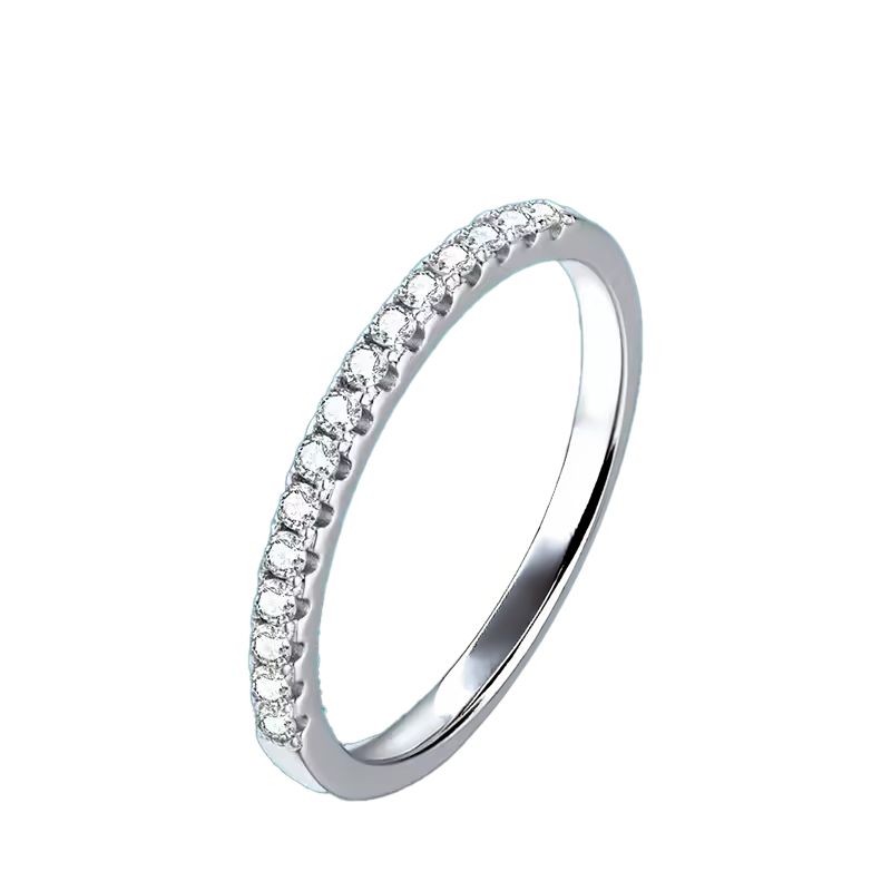 Pierścionek Eternity z moissanitami szlif okrągły – Round to kwintesencja ponadczasowej elegancji i luksusu w subtelnej formie. Delikatna obrączka wysadzana rzędem drobnych moissanitów o barwie D i czystości VVS1 lśni niezwykłym blaskiem, który przyciąga spojrzenia i dodaje szyku każdej stylizacji.