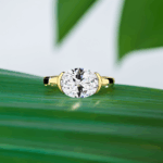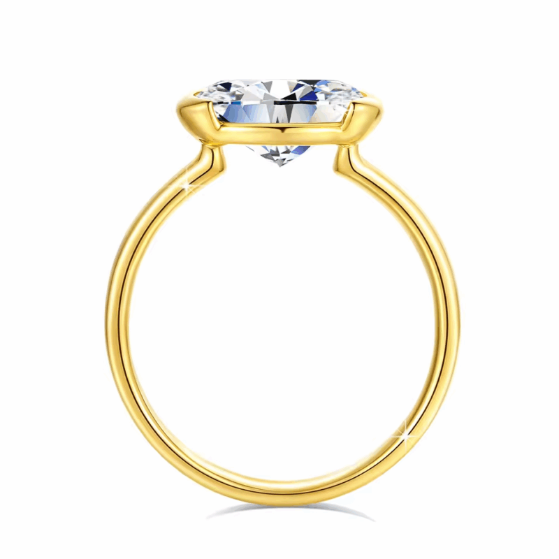 Pierścionek Solis to wyrafinowany model, który łączy nowoczesność i klasykę w idealnych proporcjach. Centralny moissanit w imponującym szlifie Oval 2ct lub Round 3ct został osadzony w eleganckiej oprawie typu pół-bezel, która podkreśla czystość kamienia i zapewnia mu wyjątkową ochronę. Obrączka wykonana z prawdziwego złota 14K (585) emanuje ciepłym blaskiem i doskonałym wykończeniem.