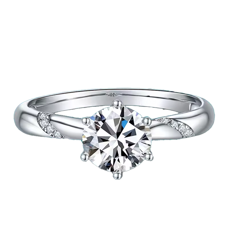 Subtelne boczne moissanity, wkomponowane w delikatnie skręconą szynę, dodają pierścionkowi lekkości i wyrafinowania, podkreślając jego elegancki charakter.