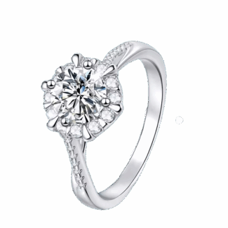 Pierścionek Aurora z moissanitami szlif okrągły – Round srebro 925 0.5ct/1ct