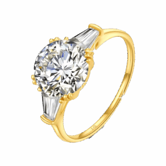 Pierścionek Celestia ze złota 14K (Au 585) z moissanitem – szlif okrągły Round & baguette 1ct / 2ct / 3ct